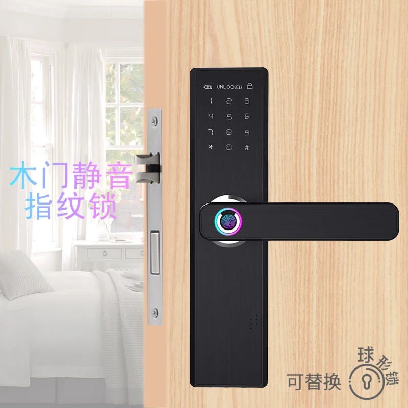 Office wooden door fingerprint lock indoor door lock smart door lock B&B induction remote control e