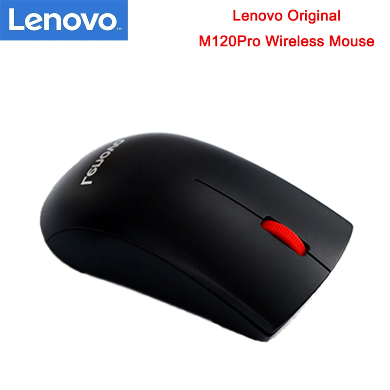 Lenovo M120Pro Wireless Office Mouse 1000DPI Optical Black Mouse with Red Rubber Roller for Home Us